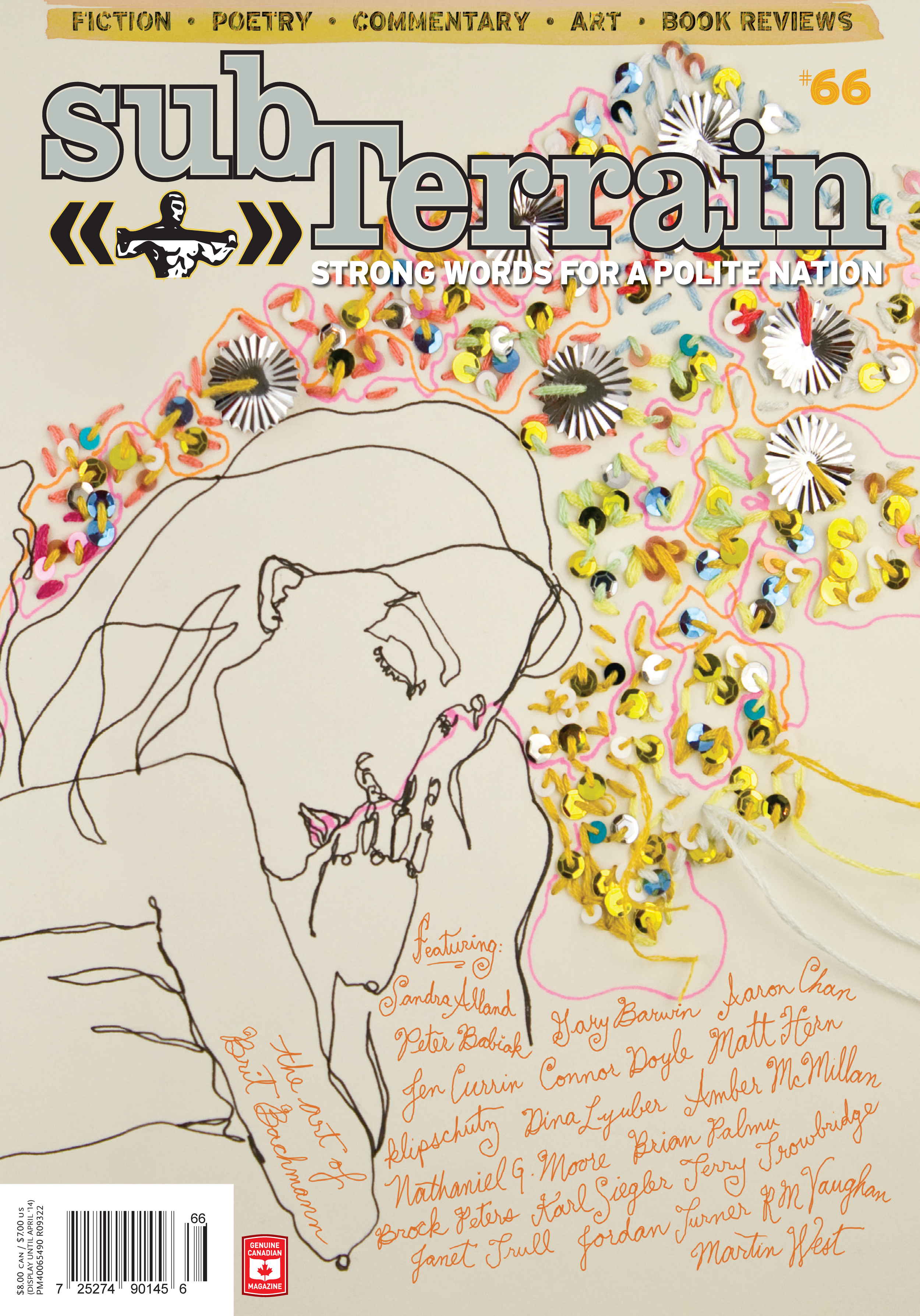 Issue #66 features commentary by Peter Babiak, Karl Siegler, and Matt Hern; poetry by Amber McMillan, Terry Trowbridge, klipschutz, Jen Currin; fiction by Brock Peters, Martin West, Dina Lyuber, Gary Barwin, Sandra Alland, and Jordan Turner; an interview with Nathaniel G. Moore conducted by RM Vaughan; and our column, The Last Word by Brian Palmu.